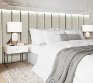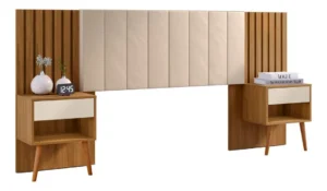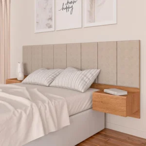 Também podemos combinar a instalação da cabeceira com painéis, prateleiras, nichos, criados-mudos e outros elementos do quarto, garantindo um visual harmonioso e funcional.